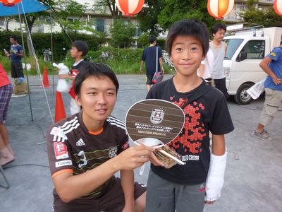 7月28日(土)に押立公園で開催された押立公園夏まつりに府中アスレティックFCフットサル男子トップチームの森拓郎選手が参加しました。 |