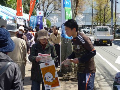 4月8日(日)、府中市の春の恒例行事「第41回府中市民桜まつり」に参加しました。この日は、春の暖かな陽気に恵まれ、絶好のお花見日和となりました。桜もちょうど満開の時期となり、会場の府中公園には例年以上の来場者で溢れていました。