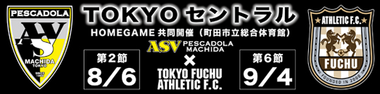 今シーズン、ペスカドーラ町田と府中アスレティックFCのホームゲームを共同開催(同日・同会場/1日2試合)にて行う東京セントラルを「第2節」「第6節」の2回、町田市立総合体育館にて開催します!! 【東京セントラルとは・・・】 【試合日程】 ・第6節 9月4日(日) こちらの開催に関する、イベント情報などにおきましては、随時更新して参りますので、お見逃しなく!! 尚、チケットのご購入方法についてはペスカドーラ町田HPでご確認ください。 |